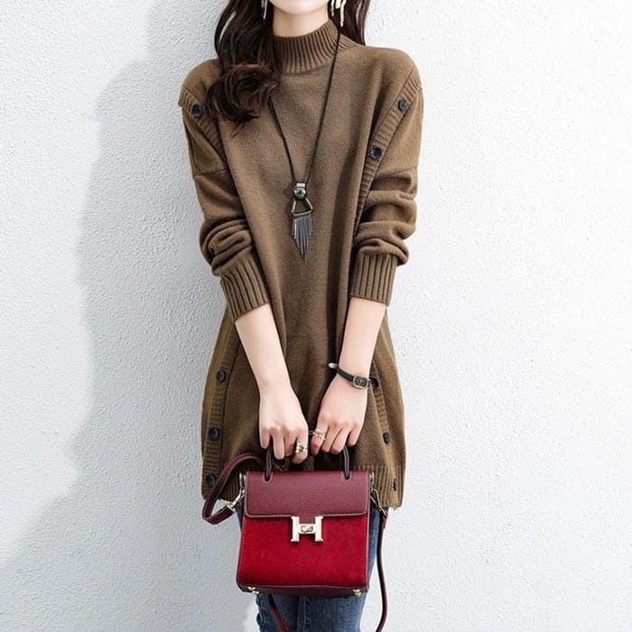 ニット レディース サイド ボタン ロング ニット 春秋冬 長袖 トップス きれいめ カジュアル 通勤 旅行 女子会 お出かけ 母の日 プレゼント 30代 40代 50代 60代 シニア オシャレ 1