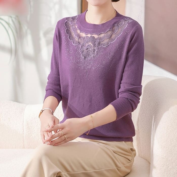 ニット 刺繍 レース レディース ハイネック 春秋冬 長袖 トップス きれいめ カジュアル フォーマル セレモニー お呼ばれ 通勤 旅行 女子会 お出かけ 母の日 プレゼント 30代 40代 50代