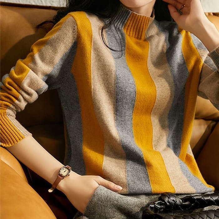ニット レディース ストライプ ハイネック 春秋冬 長袖 トップス きれいめ カジュアル 通勤 旅行 女子会 お出かけ 母の日 プレゼント 30代 40代 50代 60代 シニア オシャレ 17695
