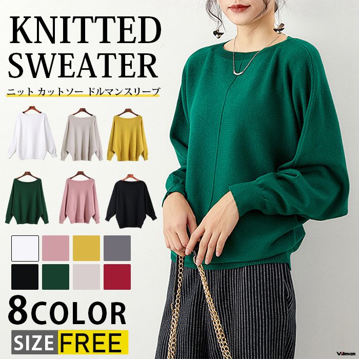 ニット カットソー レディース ドルマン セーター ドルマンスリーブ 長袖 春 秋 プルオーバー ボートネック インナー 秋 冬