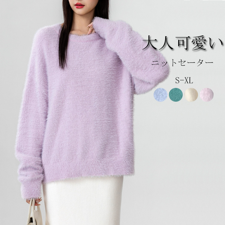 こなれ感 オーバーシルエット 大人ニット ニットセーター プルオーバー 婦人服 大きいサイズ 体型カバー ショート丈 ふわふわとした起毛素材 大人可愛い雰囲気を演出 肌触りが良い ♪