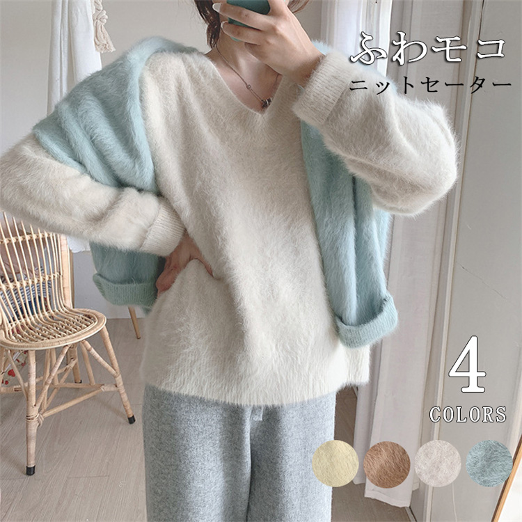 ショート丈 プルオーバー 長袖フェイクミンクセーター 秋冬トップス おしゃれ ニットセーター トップス セーター ベーシック 秋物 冬物 着回し 大人可愛い 可愛い 肌触りが良い ♪