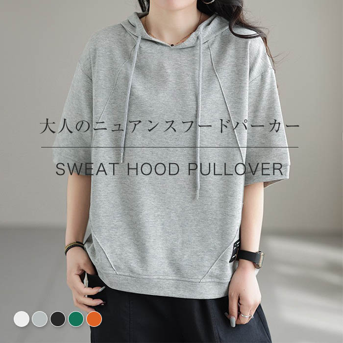 半袖パーカー ショート丈 カジュアル ~4 可愛い 大人女性レディースファッション トップス パーカー
