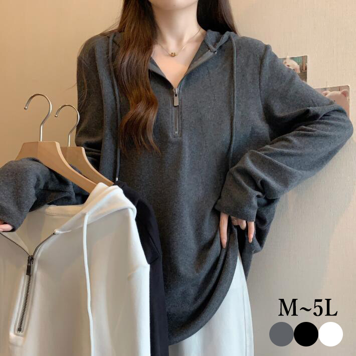 パーカー スウェット レディース トップス トレーナー 大きいサイズ ゆったり レイヤード 無地 ビッグサイズ ハーフジップ スウェットフーディーパーカー