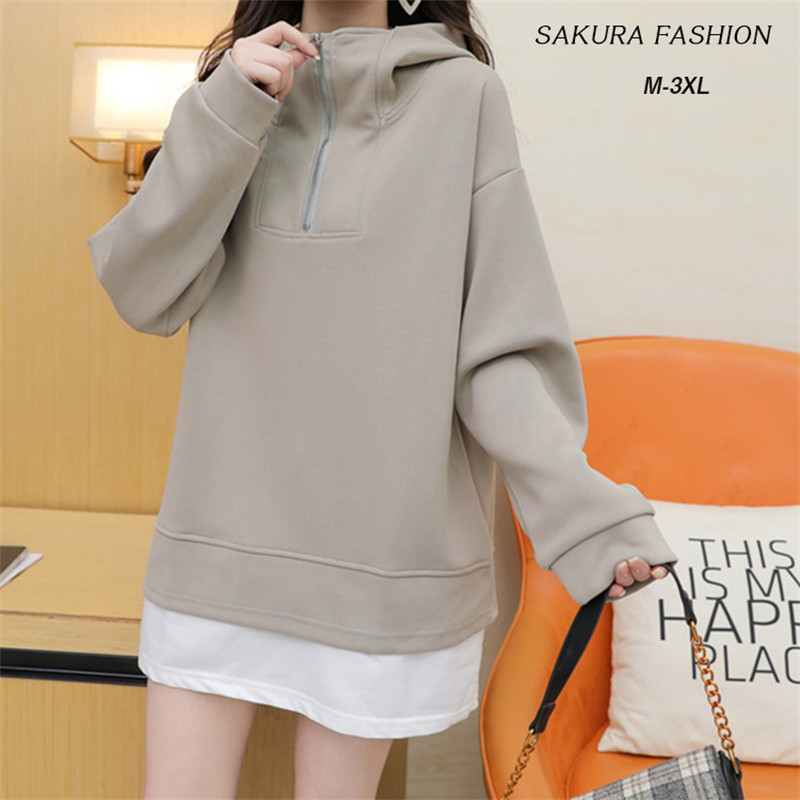 中学生 高校生 レディース ファッション 韓国 パーカー フード付き ジップアップ 袖ライン 秋春 長袖 トップス オーバーサイズ ビッグシルエット 通学 通勤 カジュアル ナチュラル ガーリー 可愛