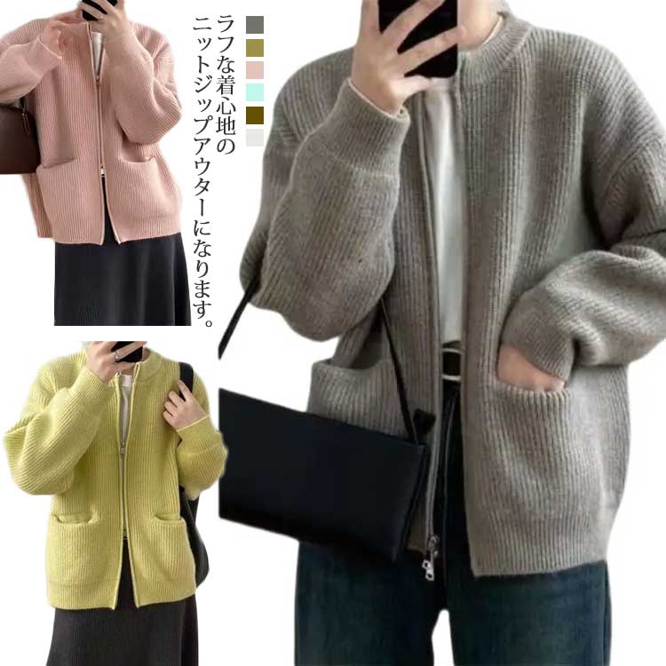 ニットカーディガン レディース 秋冬 ニットカーディガン ポケット付きゲーブル編み 前開き 無地 羽織り トップス