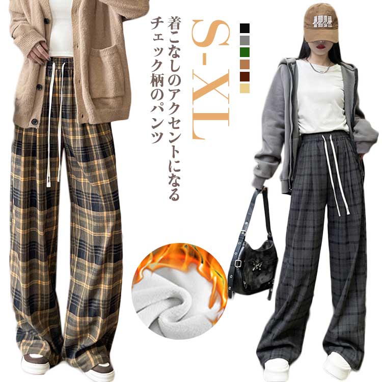 イージーパンツ チェック ワイド ストレート レディース ロングパンツ ボトムスレディースファッション ボトムス パンツ
