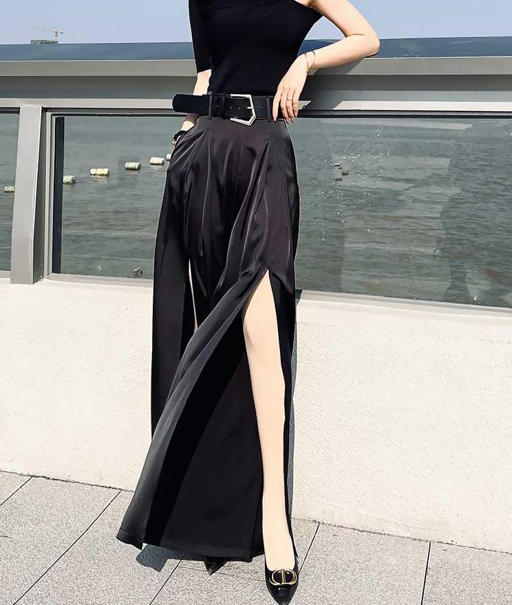 きれいめ パンツ 30代 40代 50代 60代 レディースファッション パンツ ワイド ドレープ スリット ブラック ワイン ホワイト パンツ レディース ワイドパンツ 大きいサイズ