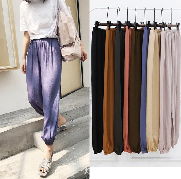M~4XL 薄手 9分丈パンツ 体型カバー 春夏 ウェストゴムレディースファッション ボトムス パンツ