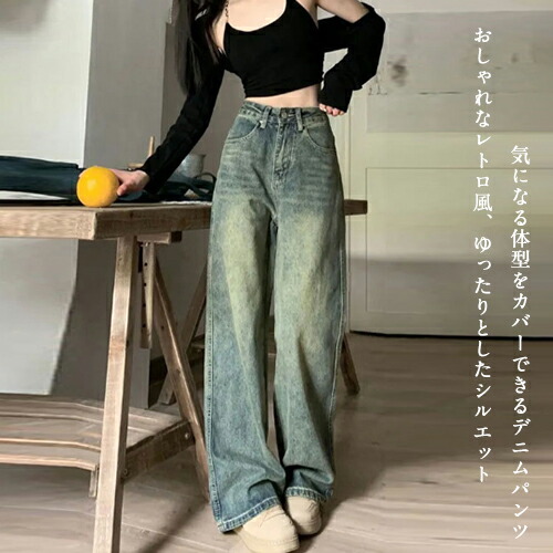 デニムパンツ レディース ロングパンツ デニム ワイドパンツ ジーンズ カジュアルコーデ ボトムス ストレート ボタン ルーズ おしゃれ ブルー