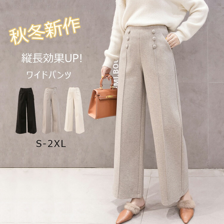 通勤にも普段使いにも、使い回しのきくおりこうアイテムです♪ワイドパンツ ボトムス 秋冬新作 レディースパンツ 秋 ストレートパンツ 合わせやすい 程よい厚み