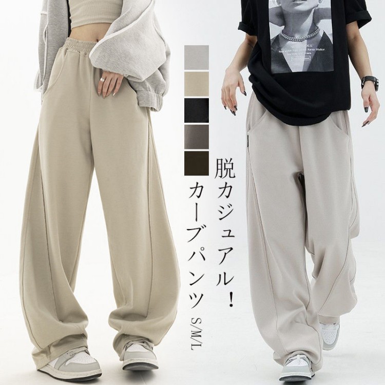 履くだけで美脚が叶う カーブパンツ 無地パンツ イージーパンツ バレルレッグパンツ 着痩せ 脚長効果 美脚ライン 動きやすい カジュアル お洒落 シンプル