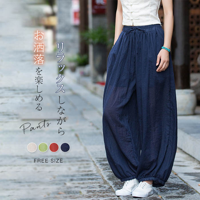 リネンパンツ レディース 夏 サーカスパンツ バルーンパンツ ワイドパンツ 薄手 涼しい 大きいサイズ サルエルパンツ コクーンパンツ コットンリネン リラックス