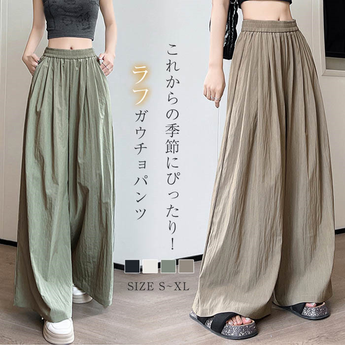 ガウチョパンツ レディース 黒 ワイドパンツ レディース ワイド パンツ 大きいサイズ イージーパンツ キュロットパンツ ロング ボトムス ひんやり パンツ 無地 総ゴム
