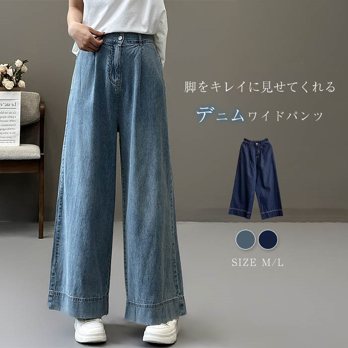 デニム ワイドパンツ 春夏 ロング タック入り レディース デニムワイドパンツ ロング 春 夏 秋 冬 デニム イージーパンツ デニムパンツ ボトムス