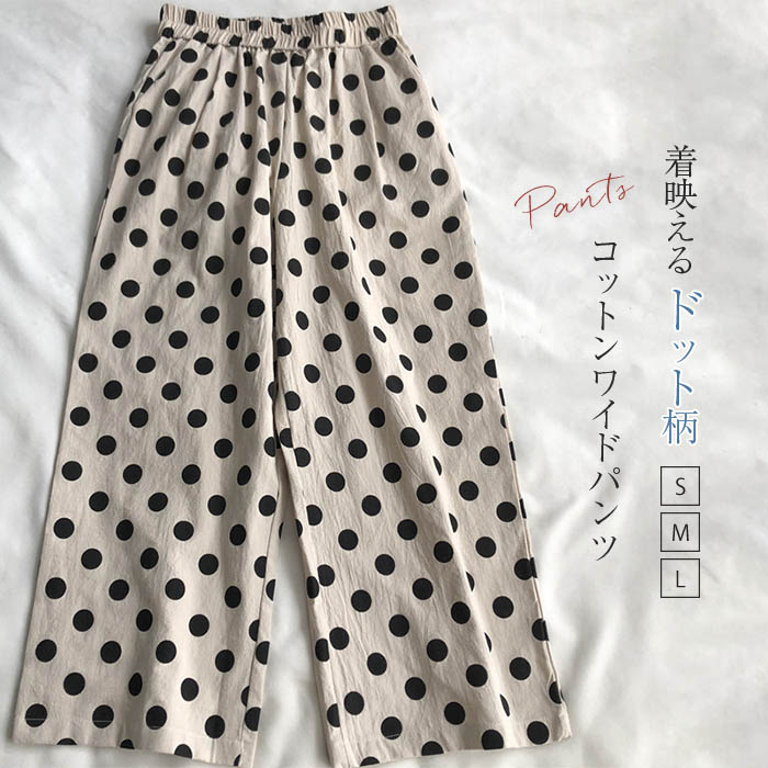 ワイドパンツ レディース 9分丈 ボトムス 春夏 春 夏 秋 オールシーズン ドットパンツ ロングパンツ ワイド パンツ リラックス イージーパンツ ワイド ロング丈 ドット柄