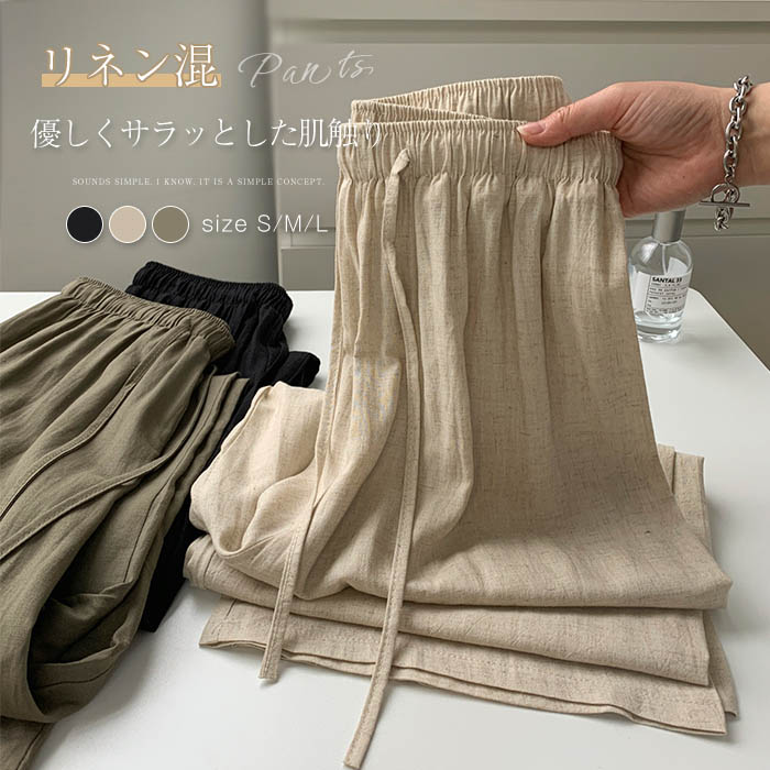リネン ワイドパンツ レディース ゆったり ロング マキシ リネンパンツ ワイド パンツ 大きいサイズ イージーパンツ ボトムス フレアパンツ ロング 麻混 リネン混
