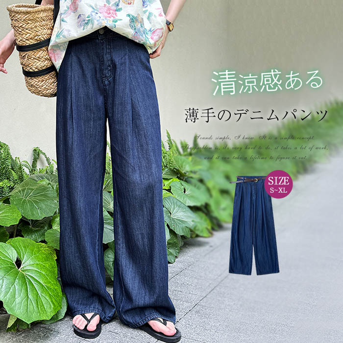 デニムパンツ レディース ワイド ワイドパンツ 夏 涼しい デニムパンツ デニムワイドパンツ タックワイドパンツ 大きいサイズ ゆったり ボトムス