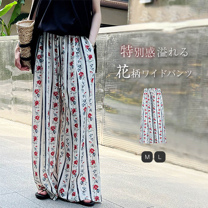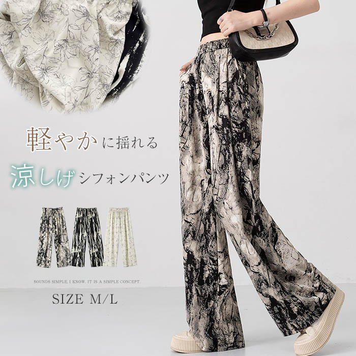 ワイドパンツ 柄 レディース 夏 涼しい 花柄パンツ ワイド ワイドパンツ ひんやり ロング パンツ イージーパンツ シフォンパンツ 花柄 総柄 ゆったり ゆる ボトムス