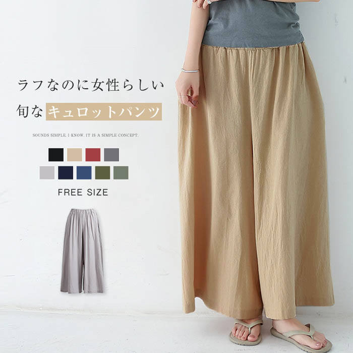 ワイドパンツ レディース ワイド パンツ 夏 綿麻調 ガウチョパンツ イージーパンツ 無地 大きいサイズ ゆったり ゆる ボトムス 春夏