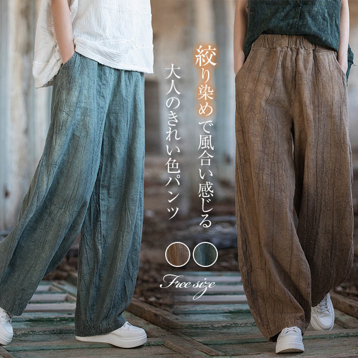 絞り染め リネンパンツ レディース サーカスパンツ バルーンパンツ ワイドパンツ カーブパンツ 春 夏 秋 大きいサイズ サルエルパンツ コクーンパンツ