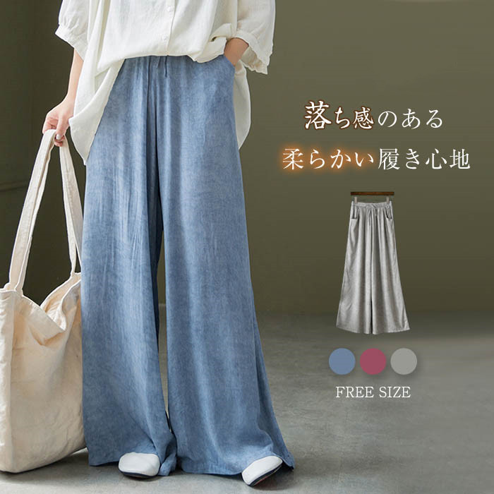 ワイドパンツ レディース ワイド パンツ 春 夏 ガウチョパンツ ヨガ ゆったり 大きいサイズ ロング イージーパンツ マキシ ボトムス ヨガパンツ ウエストゴム 美脚 上品 柔らかい