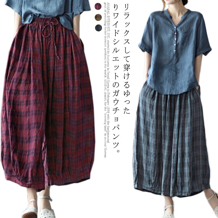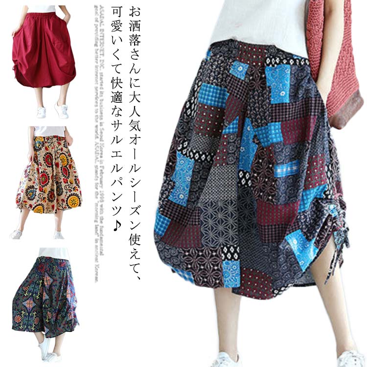 ガウチョパンツ レディース 綿麻 リネン サルエル サルエルパンツ ワイドパンツ スカーチョレディースファッション ボトムス パンツ