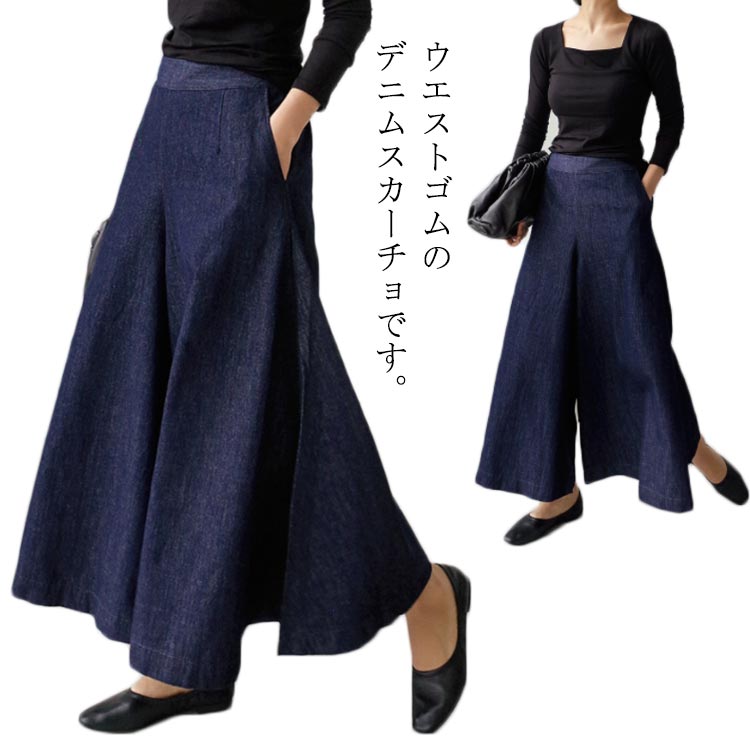 スカーチョ ワイド ワイドパンツ ハイウエスト デニム ガウチョパンツ ガウチョ スカーチョレディースファッション ボトムス パンツ