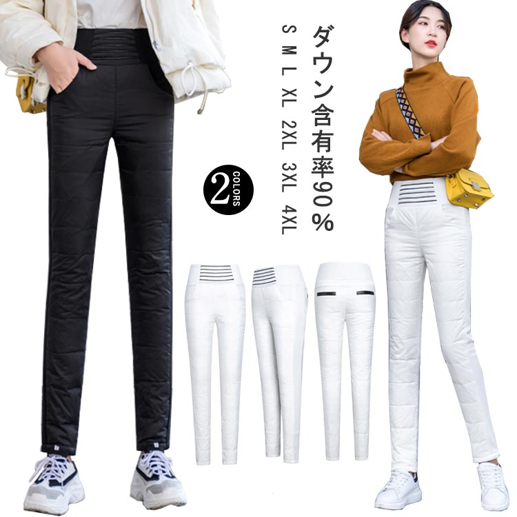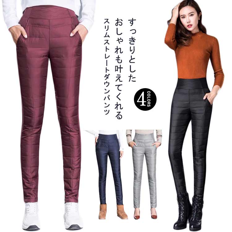 ダウンパンツ レディース スキニー スキニーパンツ 冬服 秋冬 真冬 ポケット付き 暖かい 脚長効果 大きいサイズ
