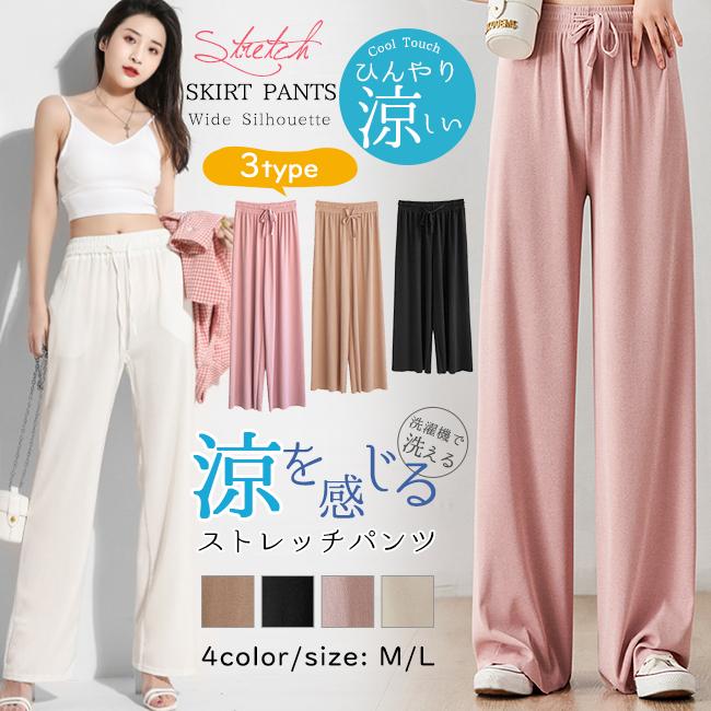 ゆったり 接触冷感ワイドパンツ リオマル接触冷感パンツ 涼感 ひんやり 薄手 レディース ワイドパンツ ゆったり ひんやり ストレッチ 伸縮性 涼しい ワイド きれいめ