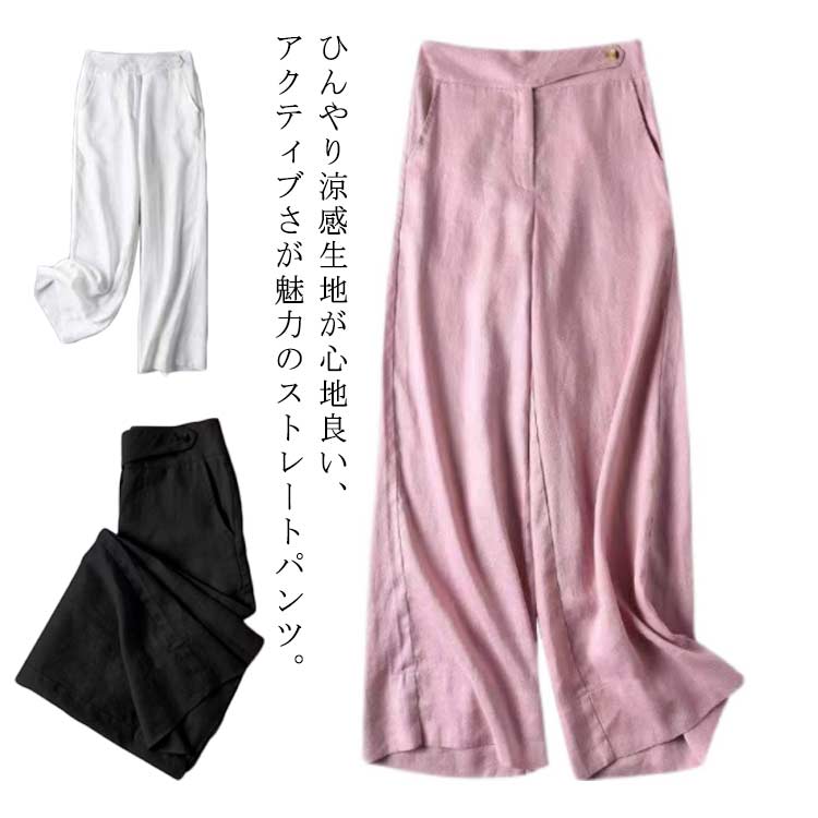 ストレートパンツ ワイド レディース リネン リネン ワイドパンツ リネン リネンレディースファッション ボトムス パンツ