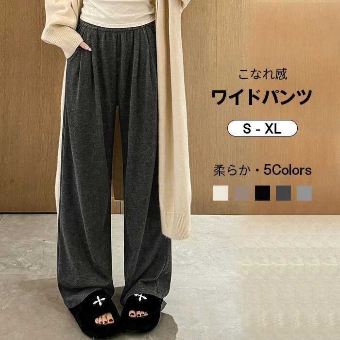 \8%クーポンで2,476円/ニットパンツ レディース ワイドパンツ こなれ感 スウェットワイドパンツ 秋冬 秋 冬 ウエストゴム ストレートパンツ 大きいサイズ パンツ カジュアル 韓国風 き