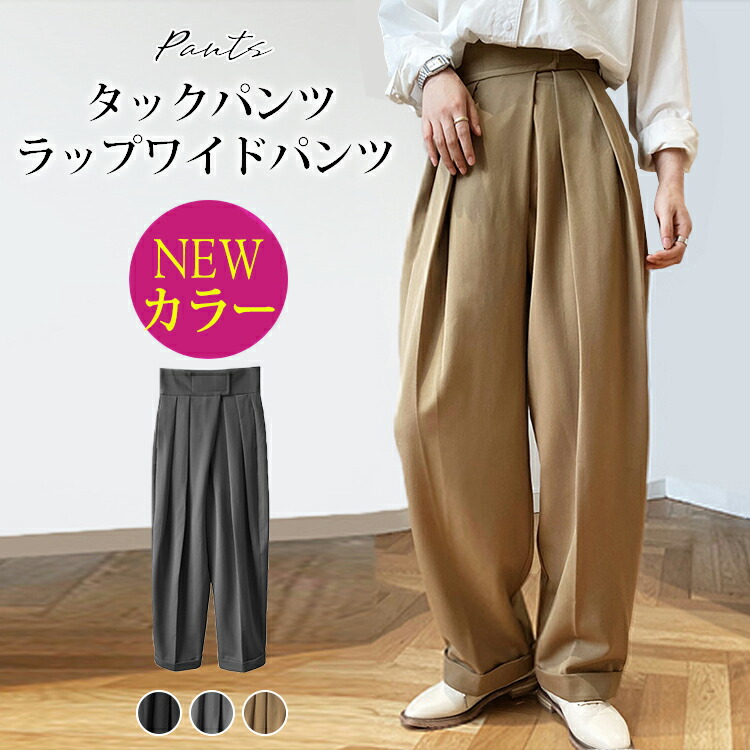 程よく落ち感のある柔らかくクタっとした質感がポイントの軽め素材 ワイドパンツ パンツ レディース 春 夏 秋 異素材切替え