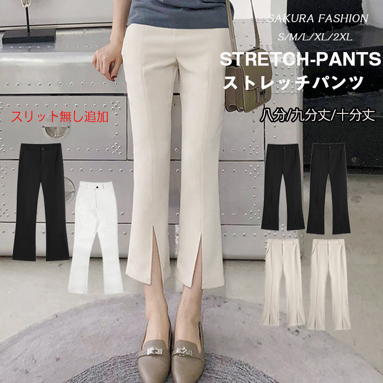 パンツ フレア レディース ボトムス ロングパンツ スリット トレッチパンツ 大きいサイズ 夏 秋 フロントスリット フレアパンツ クロップドパンツ 七分丈 八分丈 九分丈 十分丈 ストレッチ 伸縮性