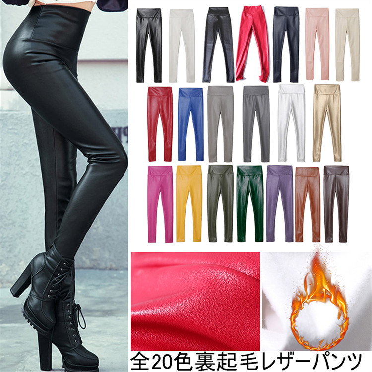 裏起毛パンツ 秋冬 レディース ズボン レザーパンツ レギパン スキニー ハイウエスト 美脚 裏フリース ぬくぬくパンツ スリムフィット
