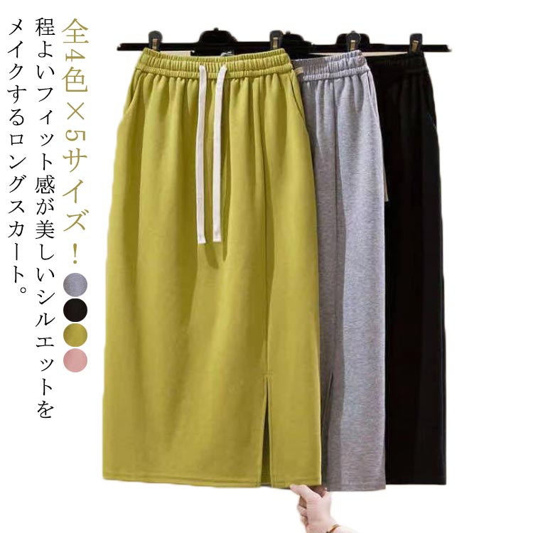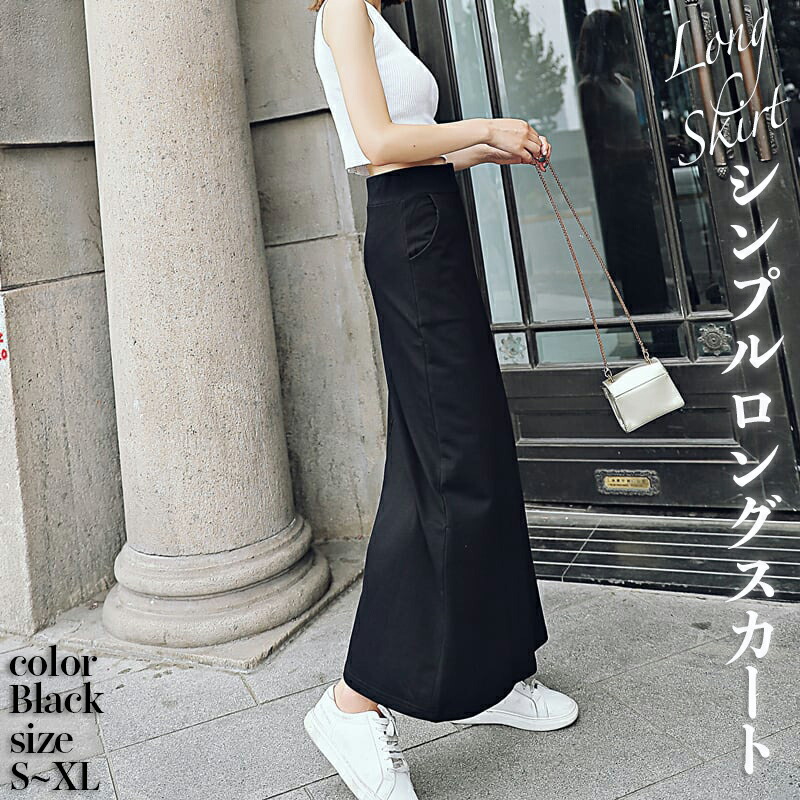 スカート ボトムス ロング マキシ スリム タイト ライン レディース ストレッチ きれいめ シンプル カジュアル 上品 おしゃれ かっこいい 無地 春 夏 秋 冬 10代