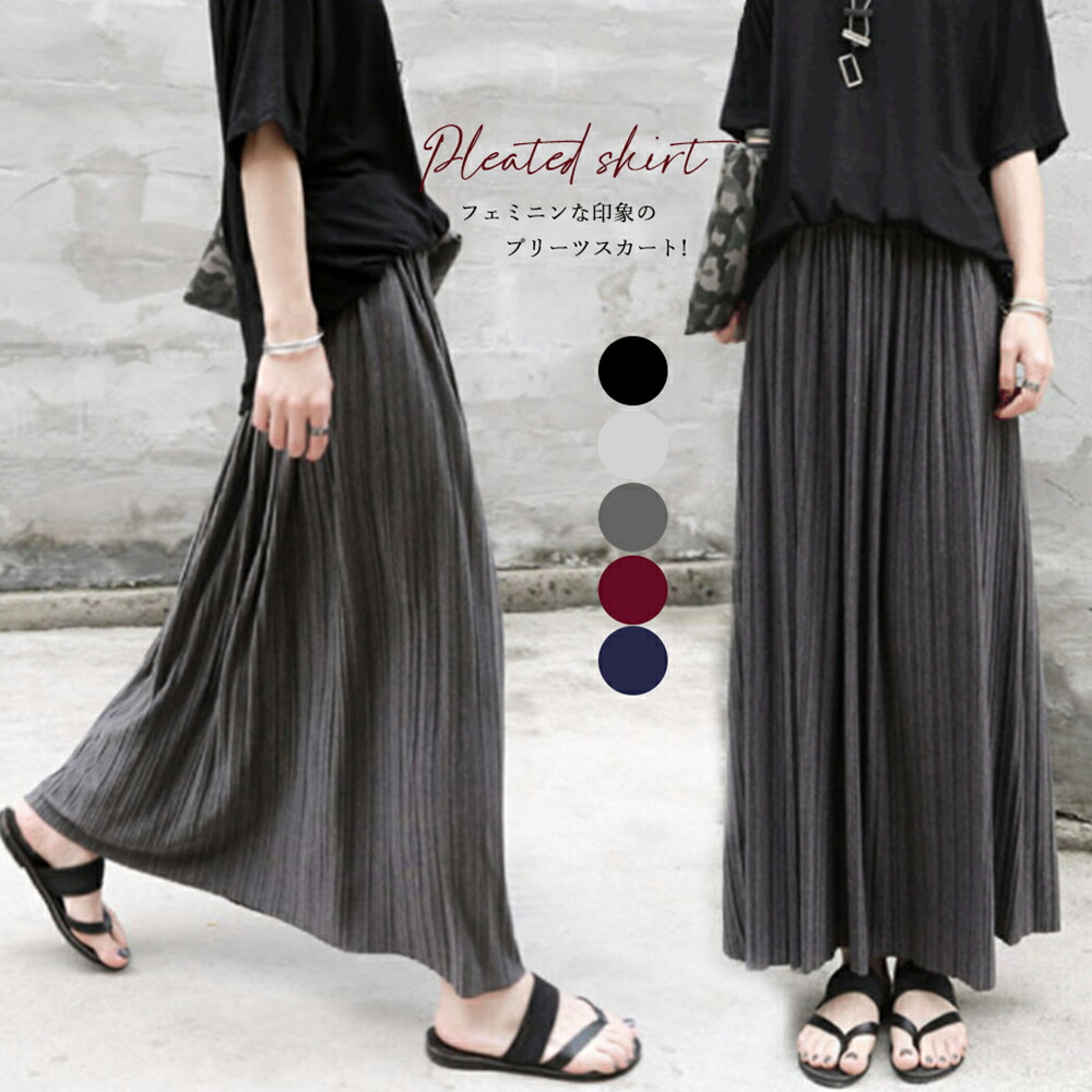 スカート ボトムス ロングスカート プリーツスカート ロング丈 ライン プリーツ ハイウエスト ポリエステル 大人可愛い きれいめ シンプル カジュアル 大人 上品 お洒落 かっこいい