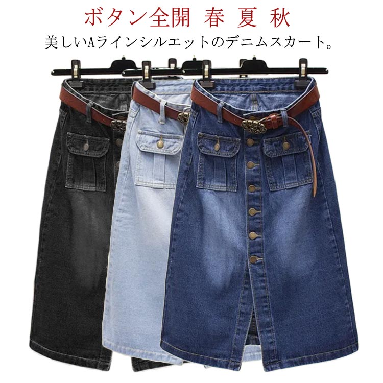 デニムスカート タイト フロントボタン 前開き スリット 膝丈 ハイウエスト スカートレディースファッション ボトムス スカート