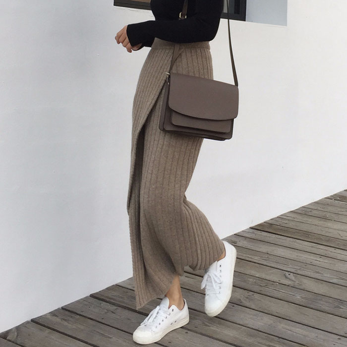 ラップニットスカート レディース ボトム ロング丈 ロング マキシ マキシ丈 スリット 秋 秋冬 冬 スカート ロングスカート ニット ニットスカート ラップ 巻きスカート風