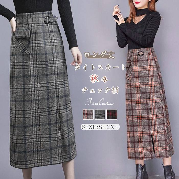 チェック スカート ロング 春 ロング丈 秋冬 チェック柄 タイトスカート 春 ロングスカート 秋 チェックスカート アシンメトリー 大きいサイズ レディース