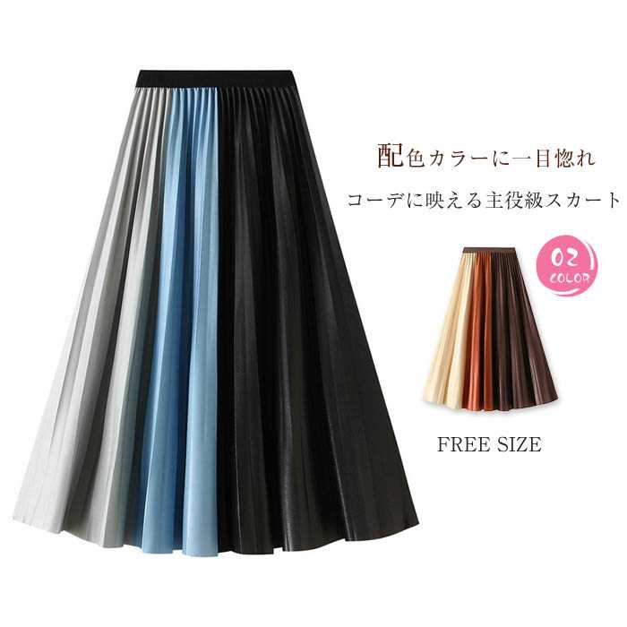 プリーツスカート ロング 秋冬 配色 きれいめ フレアスカート aラインスカート レディース 大人 ロング スカート プリーツ スカート おしゃれ ウエストゴム ボトムス