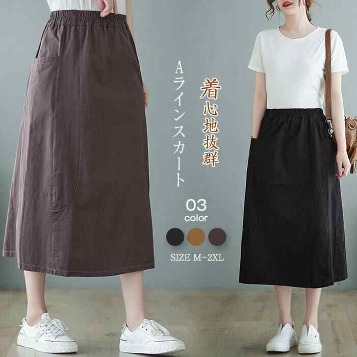 スカート レディース ミモレ ボトムス 春秋 春 夏 秋 Aラインスカート レディーススカート ミモレ丈 無地 aライン ウエストゴム リラックス 着回し タイト 20代 30代 40代 50代
