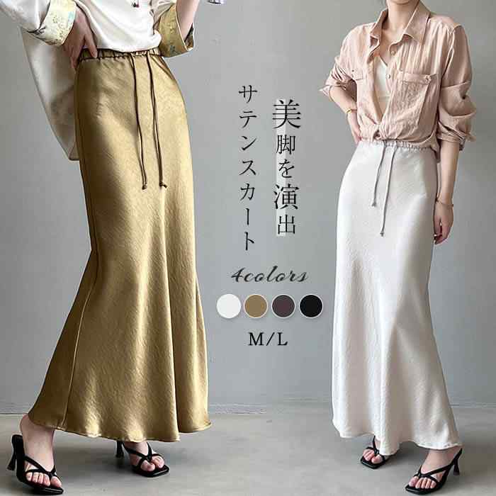 春スカート 春夏 ボトム サテン ロングスカート 着痩せ ラインスカート マキシ丈 フレア 無地 光沢 ライン ギャザー 大人 上品 高見え 細見え キレイめ 20代 30代 40代