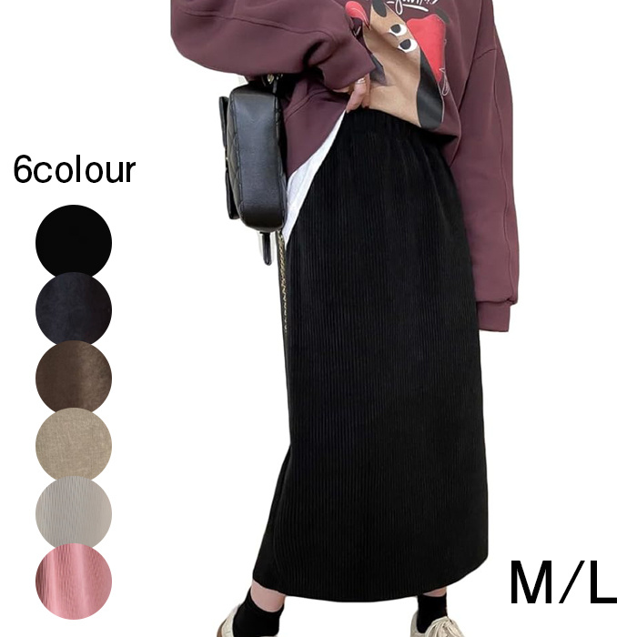 スカート ロング レディース 裏起毛 リブ Iライン スリット 冬 秋 ゆったり カジュアル 暖かい M L