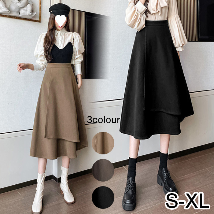 4色展開 スカート レディース 巻きスカート ミモレ丈 Aライン フレア 着痩せ オフィス 春 秋 冬