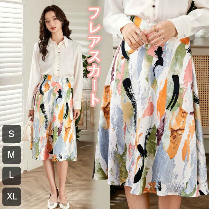 フレアスカート スカート 花柄 ロングスカート フレア ロング 大人カジュアル タイダイ 30代 40代 キレイめ レディース ミディアムスカート レディース
