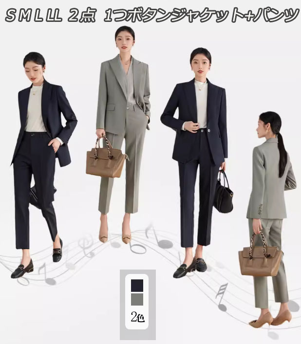 2色 無地 長袖ジャケット+パンツスーツ レディース パンツスーツ セットアップ フォーマルスーツ ビジネススーツ ママスーツ レディーススーツ 卒業式スーツ 入学式 入園式 七五三