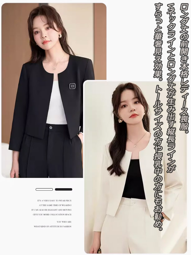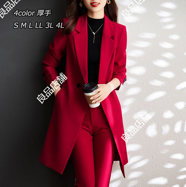 4色 無地 ロングジャケット+パンツスーツ パンツスーツ セットアップ フォーマルスーツ ビジネススーツ ママスーツ レディーススーツ 卒業式スーツ 細見え 視覚着痩せ、スタイルアップ