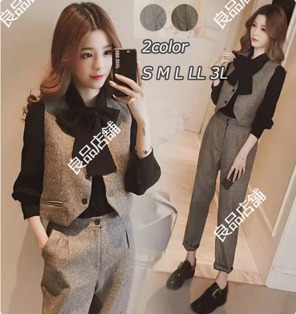 2色 無地 ベスト+黒シャツ+パンツスーツ レディース パンツスーツ セットアップ フォーマルスーツ ビジネススーツ ママスーツ レディーススーツ 卒業式スーツ 入学式 入園式 七五三
