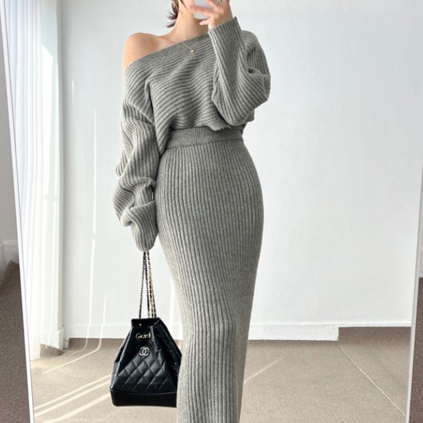 ニットセットアップ レディース 20代 30代 40代 50代 秋冬 レディース ロング丈 ニット セットアップ トップス